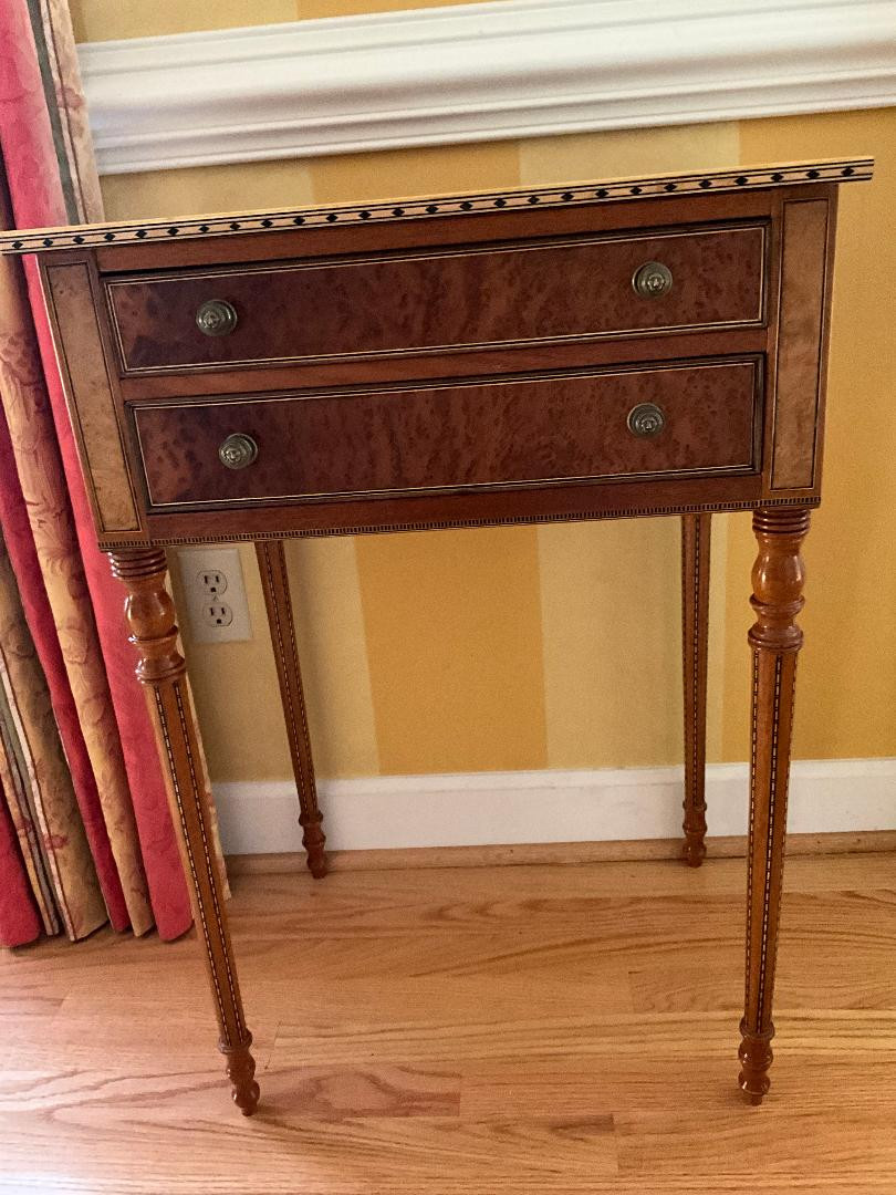 This Seymour Ladies Table of the Federal Period is made of Mahogany and secondary Poplar. It measures 29 1/2" H x 20 1/4" W x 16" D. Made in Goldsboro, North Carolina.